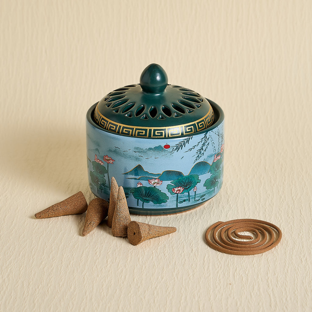 The body of the incense burner is deep and wide, with enough room for conical incense cones or coil incense . The incense burner is not only a tool for burning incense but also an artistic decoration , expressing a quiet, delicate and profound aesthetic taste.