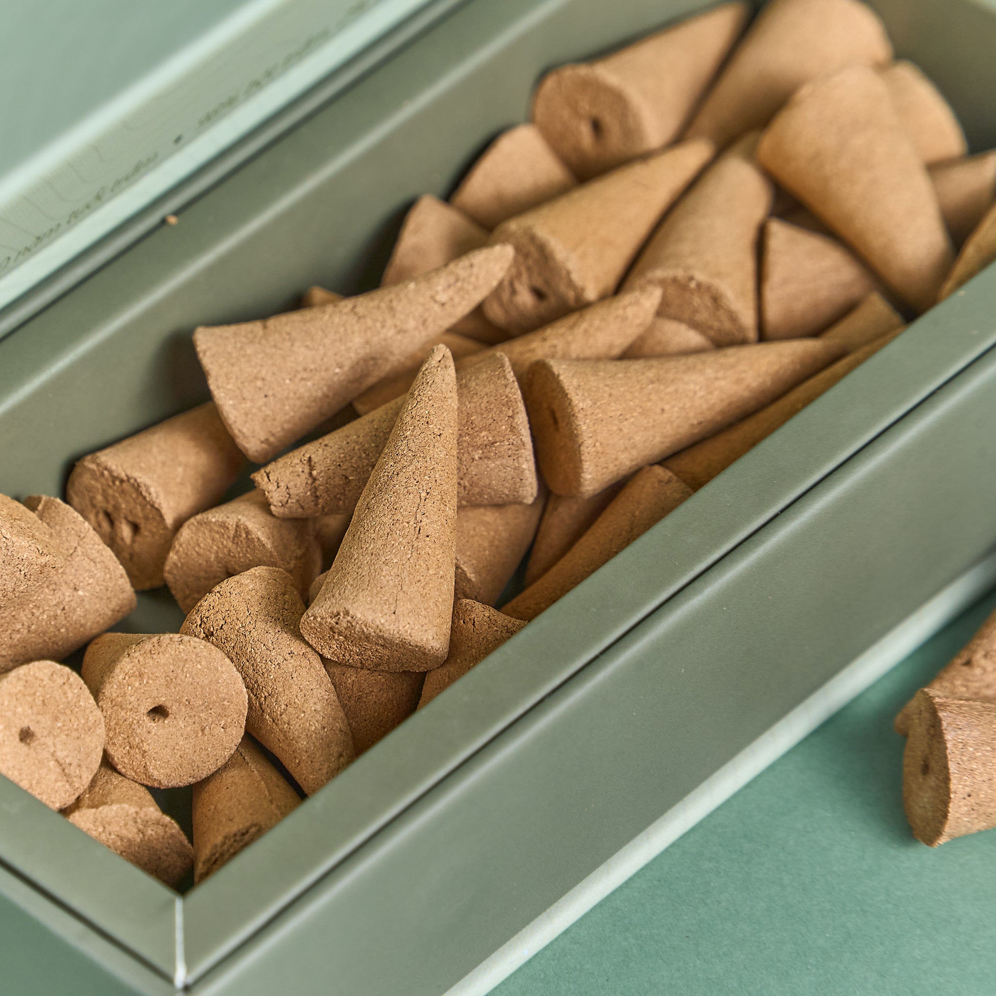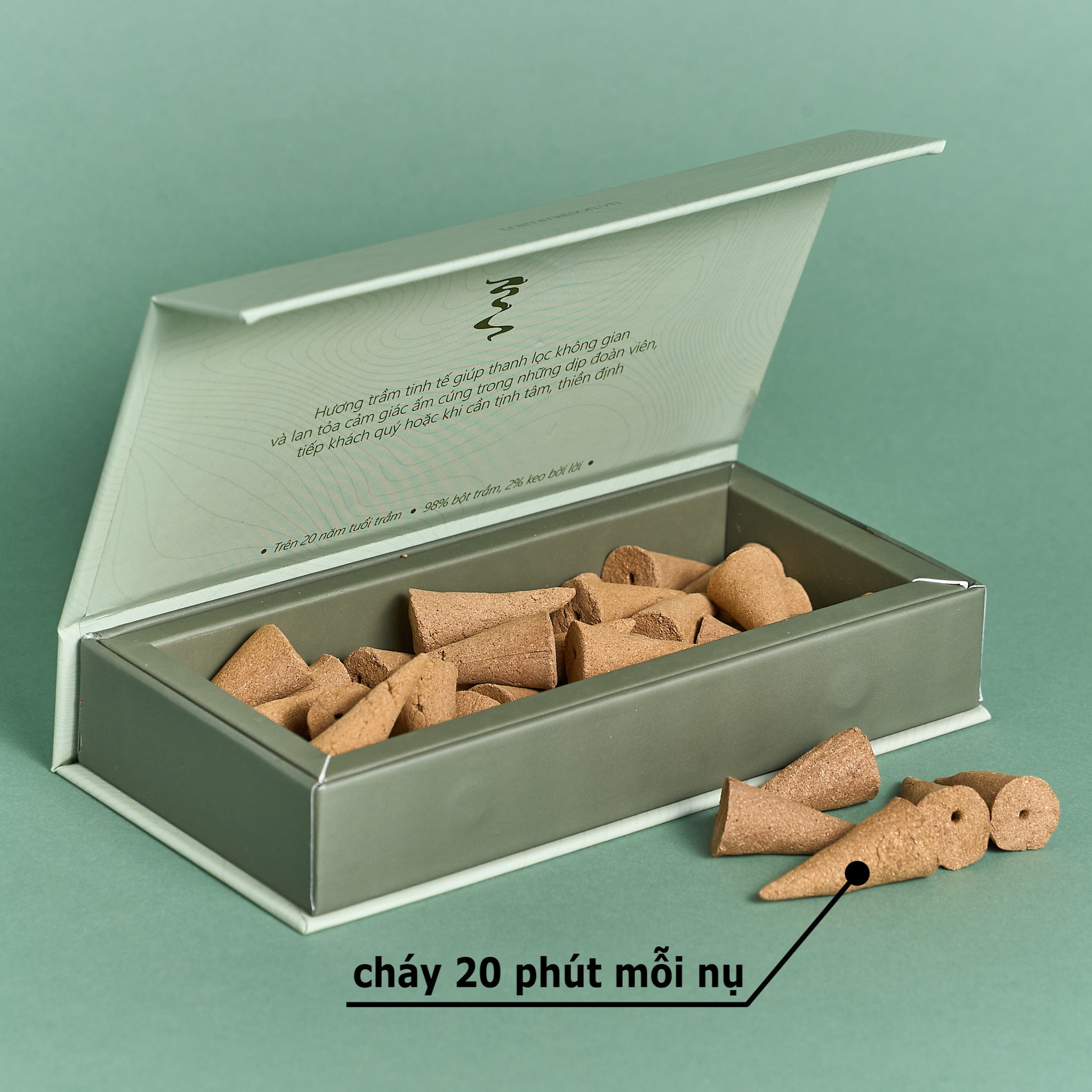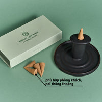 • Specifications: Each box includes 24 small conical incense cones , completely handcrafted. Incense cones are made in moderate size to limit heat when burning, helping to preserve the purest scent. Large cones will generate high temperatures, causing the essential oil in the incense to burn fiercely and lose its original scent.