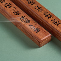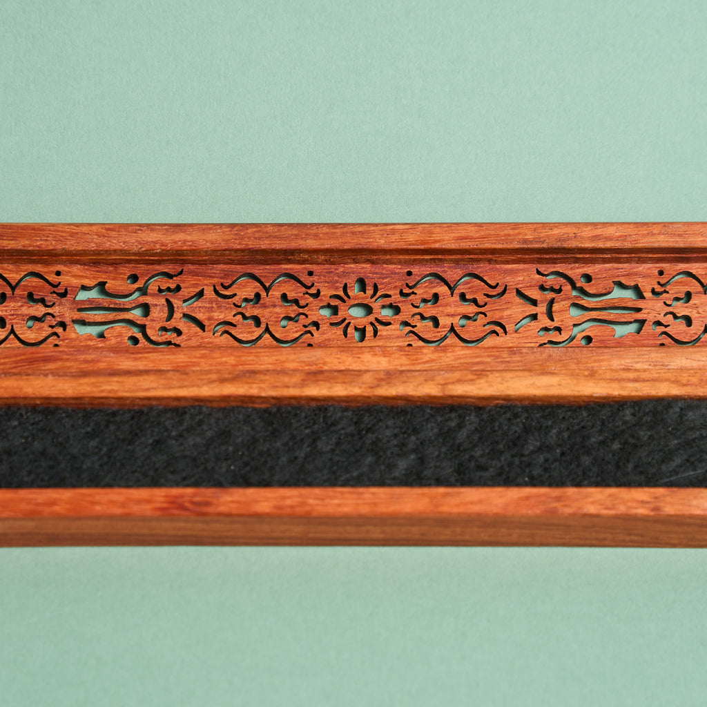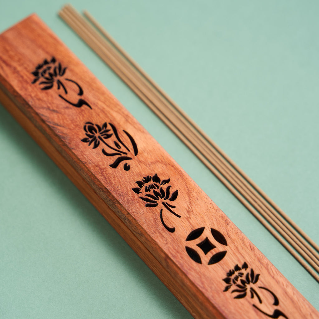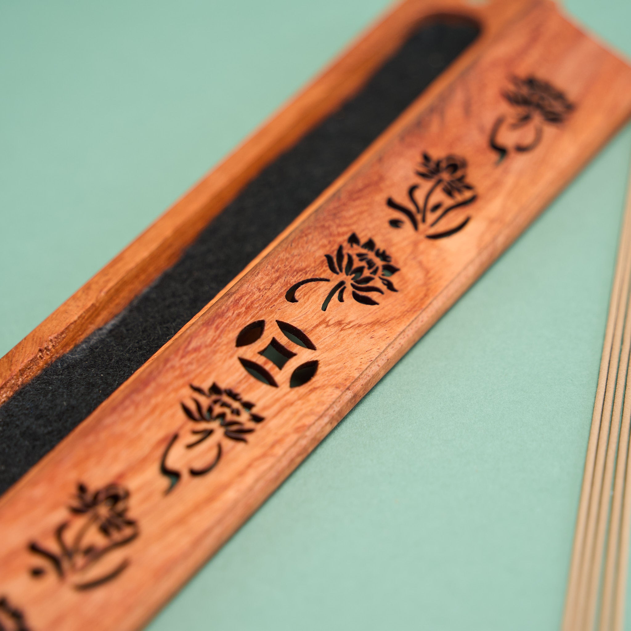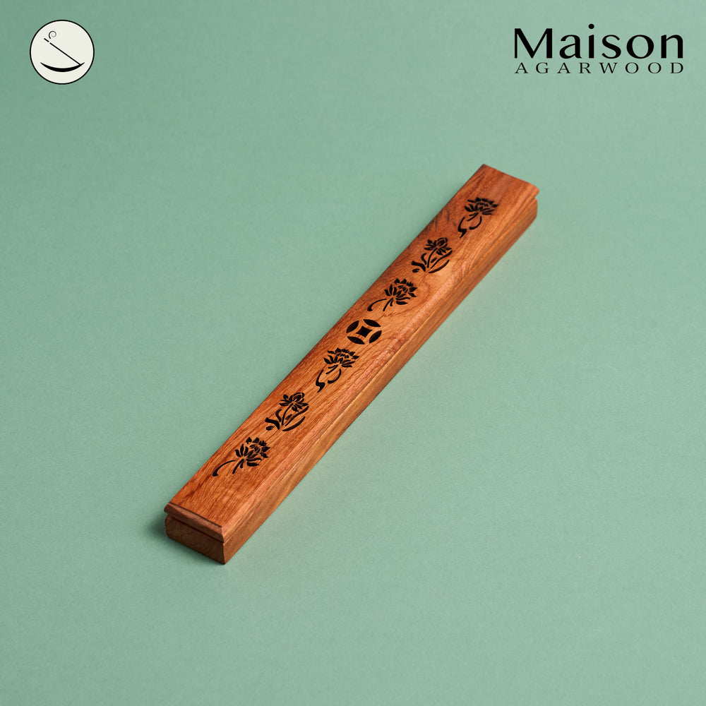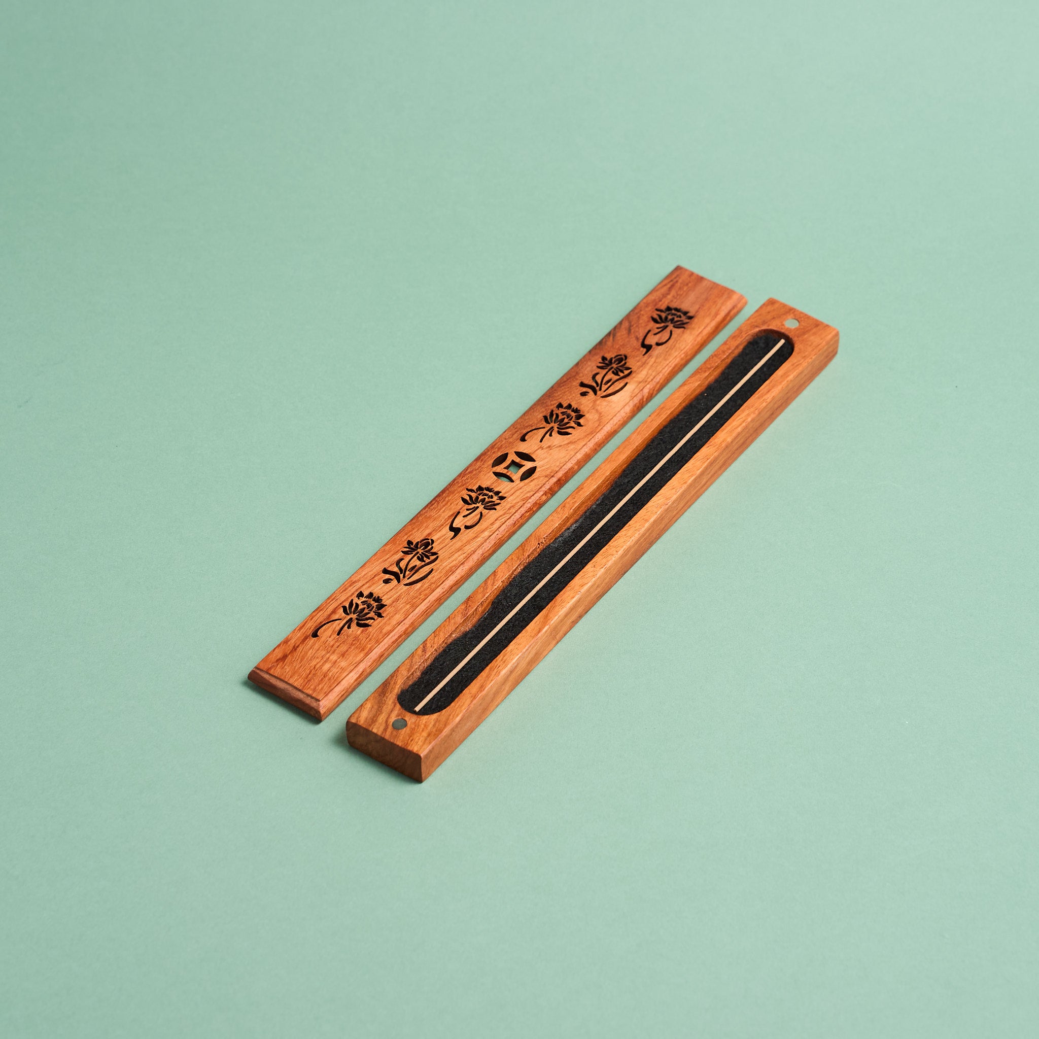 • Khay đốt trầm được chế tác từ gỗ tự nhiên, mang hương thơm dịu nhẹ đặc trưng, góp phần tạo nên không gian sống mộc mạc và thư thái. Bề mặt được xử lý mịn màng, sắc nâu trầm ấm, phù hợp với nhiều phong cách nội thất từ truyền thống đến hiện đại.