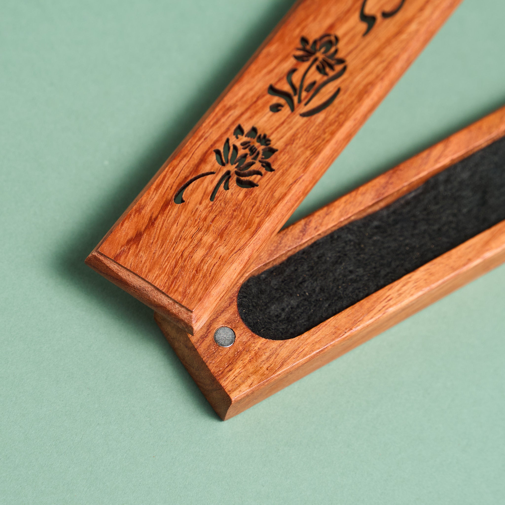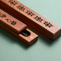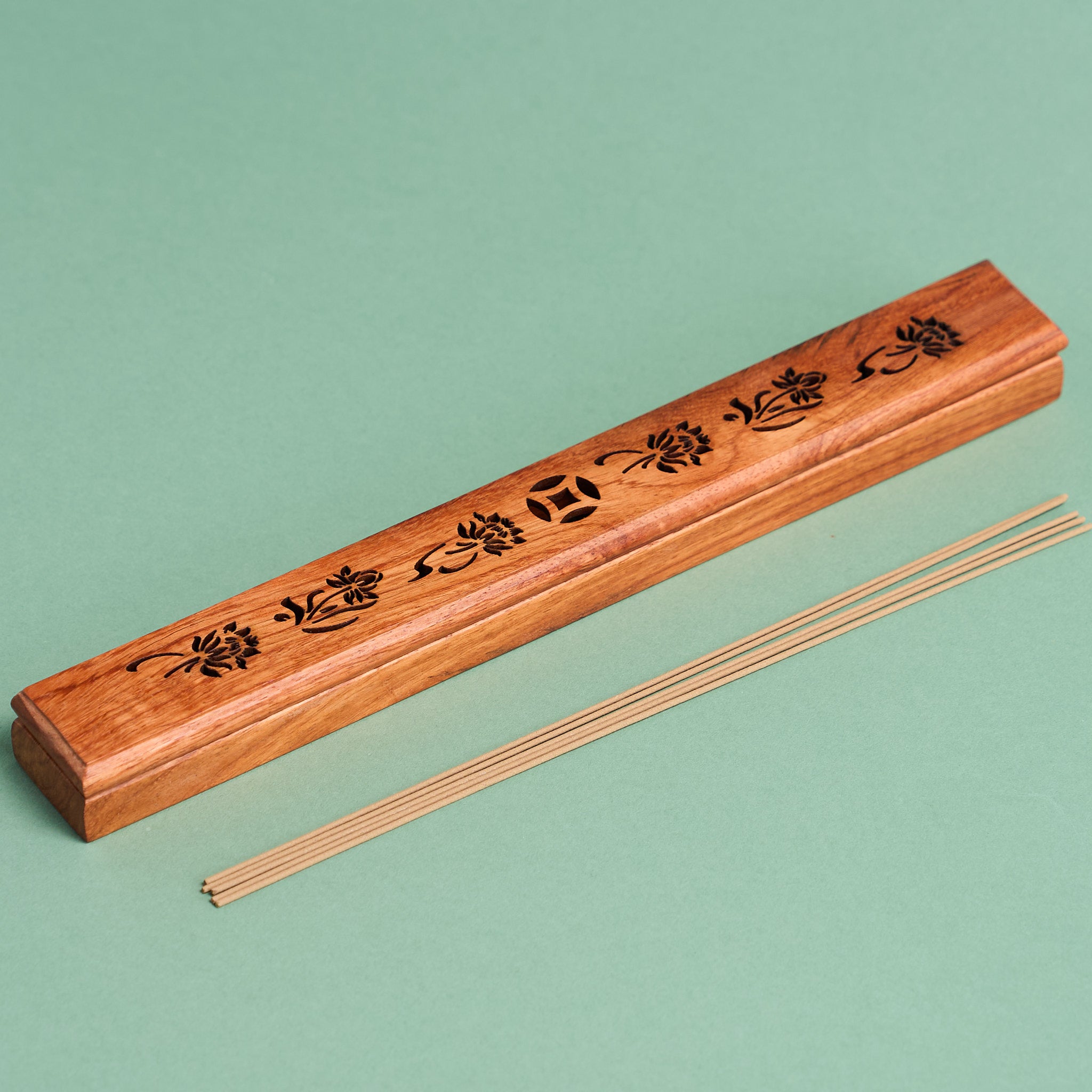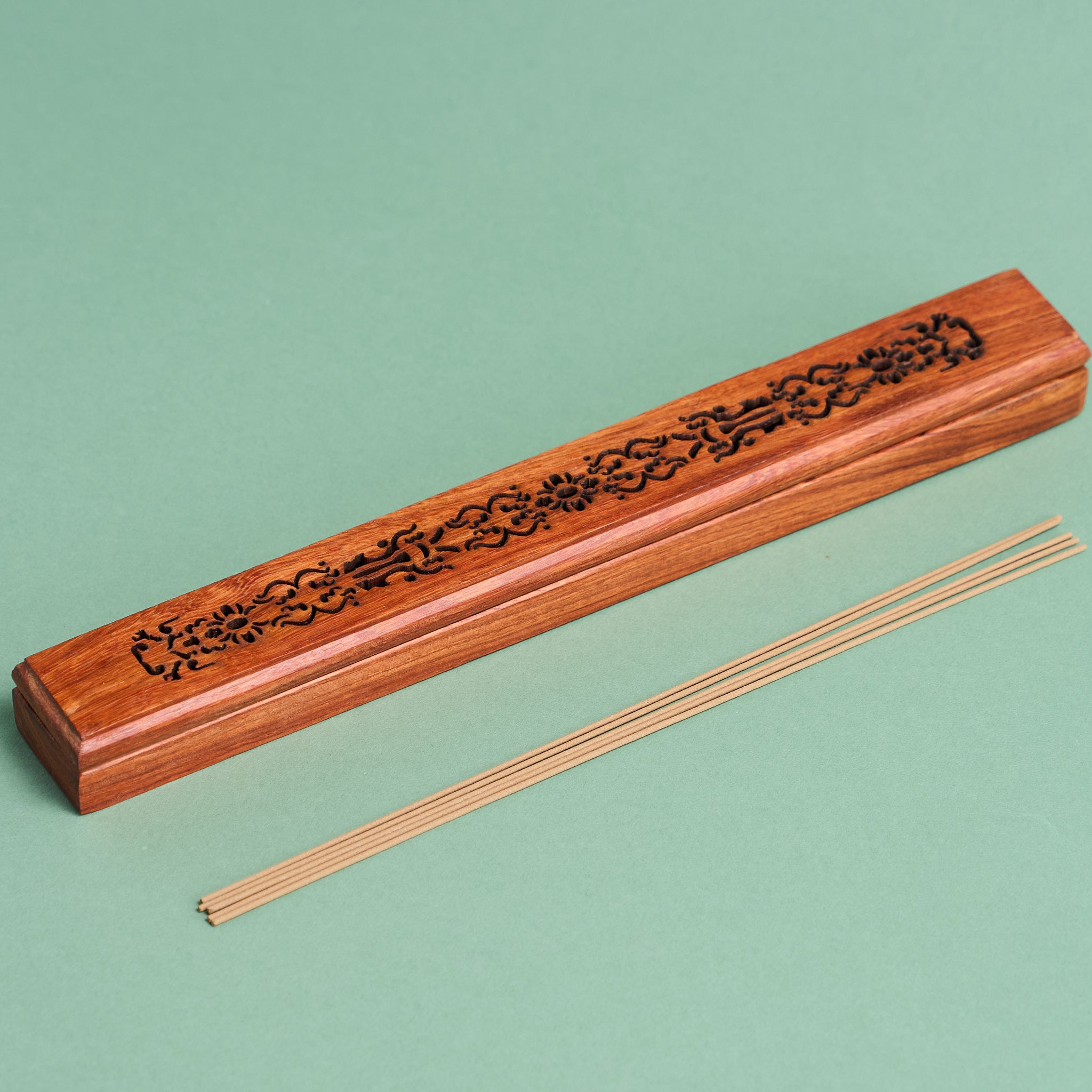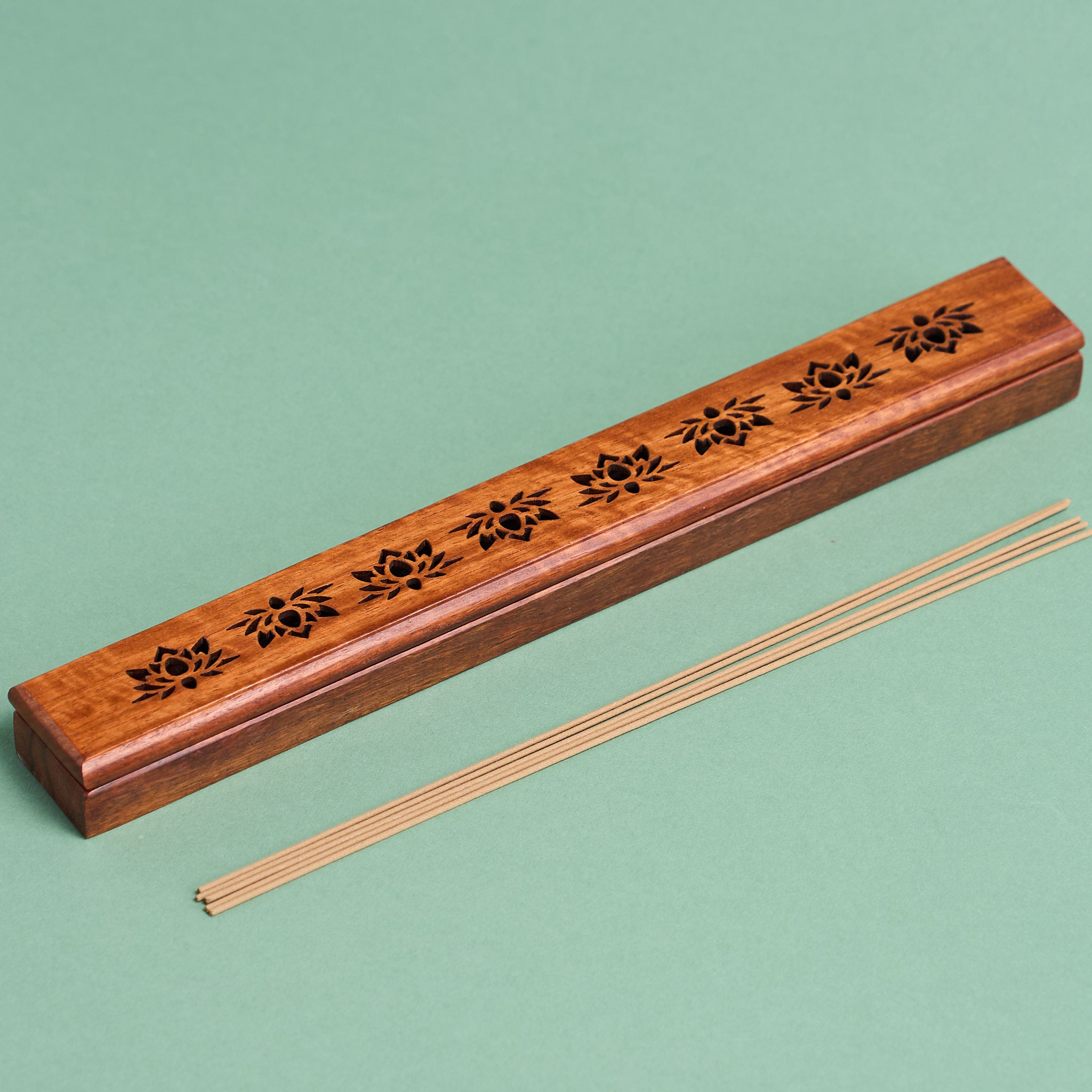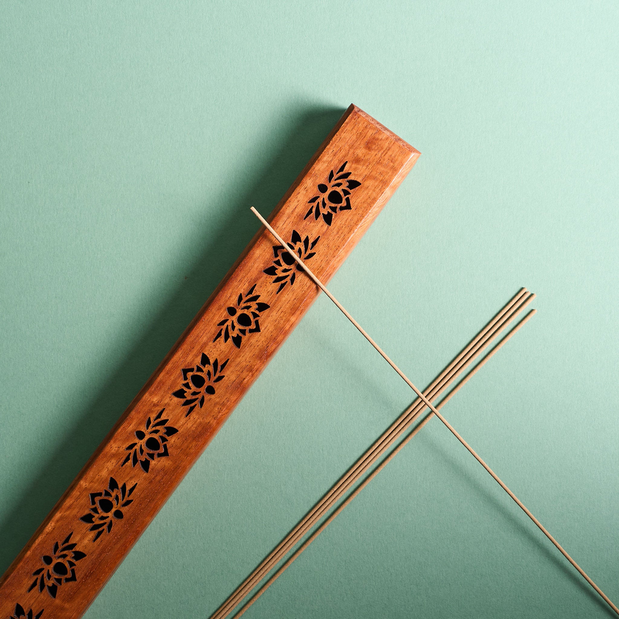 • Khay đốt trầm được chế tác từ gỗ tự nhiên, mang hương thơm dịu nhẹ đặc trưng, góp phần tạo nên không gian sống mộc mạc và thư thái. Bề mặt được xử lý mịn màng, sắc nâu trầm ấm, phù hợp với nhiều phong cách nội thất từ truyền thống đến hiện đại.