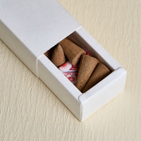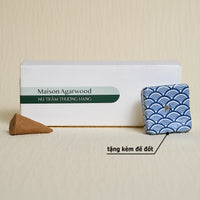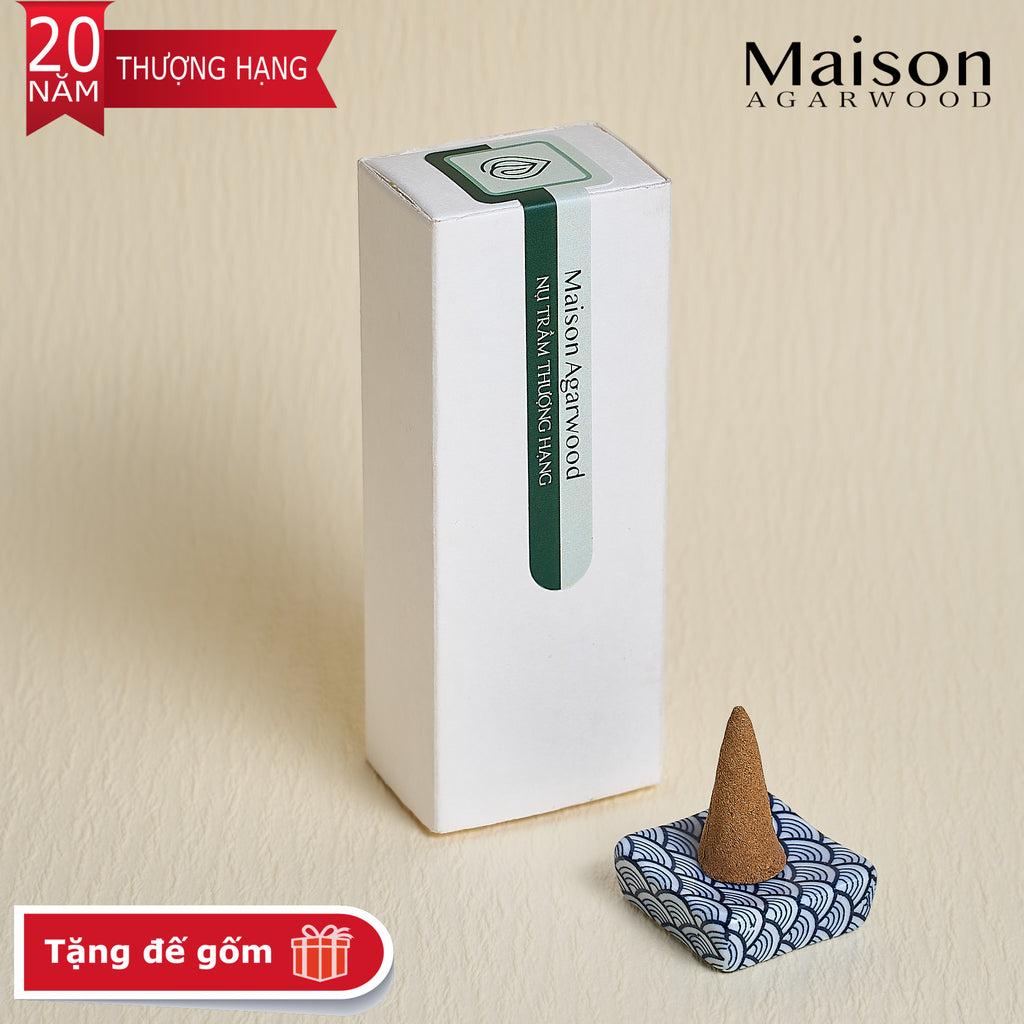 • Quy cách: Mỗi hộp gồm 8 nụ trầm hình chóp nhỏ, được chế tác hoàn toàn thủ công. Nụ trầm được làm với kích thước vừa phải để hạn chế nhiệt lượng khi đốt, giúp giữ được mùi hương thuần khiết nhất. Nụ lớn sẽ sinh nhiệt độ cao, khiến tinh dầu trong trầm bị cháy gắt và mất đi hương thơm nguyên bản. Tặng kèm 1 đế đốt bằng gốm chịu nhiệt, dùng được cho nụ trầm và nhang thanh.